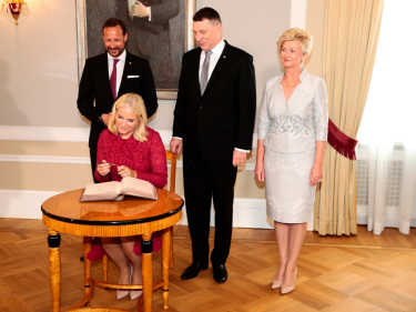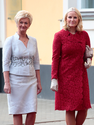 LatviaRuvdnaprinseassa Mette-Marit ja Latvia vuosttašroavvá, Iveta Vējone. Govva: Lise Åserud / NTB Scanpix -