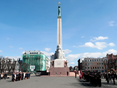 LatviaRuvdnaprinsabárra ja Presideantabárra bidjet liđiid Latvia Friddjavuođamonumeantta lusa. Govva: Lise Åserud / NTB Scanpix -
