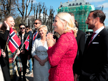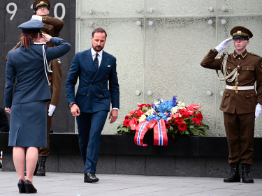 LatviaRuvdnaprinsabárra deaivvadii norgalaš studeanttaiguin maŋŋel lieđđeseremoniija Friddjavuođamonumeantta luhtte. Govva: Lise Åserud, NTB Scanpix -