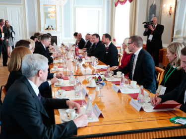 LatviaMaŋŋá seremoniija čoahkkanedje diet guokte bára ságastallamiidda, ja dan maŋŋá ledje norgalaš ja látvialaš delegašuvnnaid oktasaš čoahkkimat. Govva: Lise Åserud, NTB scanpix -