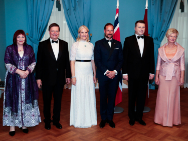 LatviaRuvdnaprinsabárra ja Presideantabárra ovdal almmolaš mállásiid Presideantagárdimis Rigas. Gurutbealde ambassadevra Steinar Egil Hagen ja su roavvá Rita Hagen. Govva: Lise Åserud / NTB Scanpix -