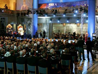 Regjeringens gave til Dronningen var en utstilling av barnekunst. Arbeidene er laget av barn på kunstskoler over hele landet, og Dronningen fikk selv åpne utstillingen (Foto: Lise Åserud / Scanpix)