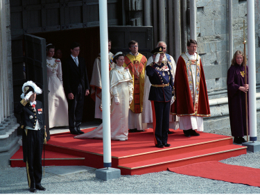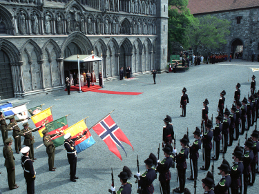 Gonagas Majestehta Garde dearvvaha Gonagasbárra Nidarosdomen olggobealde (Govva: Gorm Kallestad NTB / Scanpix)