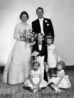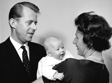 Suoidnemánu 22. beaivvi 1962 riegádii sudno vuosttaš mánná, Cathrine. Bárra oaččui áiggi mielde vihtta máná ovttas. Govva : NTB / Scanpix