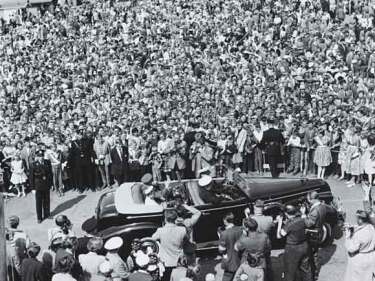 1958 sivdnádallanmátki: Gonagas Olav boahtá Hamarii (Gonagaslaš hoava govvaarkiiva)
