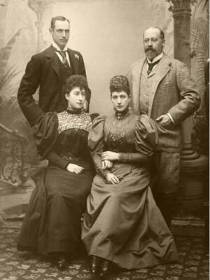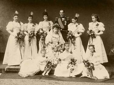 Danmárkku Prinsa Carl ja Stuora- Brittannia Prinseassa Maud – geat maŋŋil šattaiga Gonagas Haakon ja Dronnet Maud – náitaleaba Buckingham Palaces skábmamánu 22. beaivvi 1896 (Govva: Gunn & Stuart, London, Gonagaslaš hoava vuorkágovva)