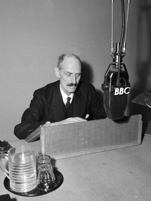 RadioGonagas Haakon ja Ruvdnaprinsa Olav radio bálddas iežaset ruovttus olggobealde London gávpoga, geasset 1942 (Govva: Scanpix) -