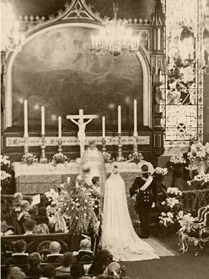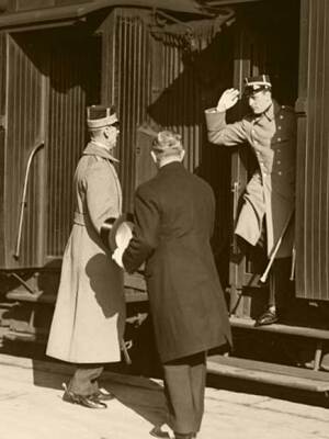Forlovelsen mellom Kronprins Olav og Prinsesse Märtha av Sverige ble annonsert i Stockholm 14. januar 1929. Foto: NTB arkiv