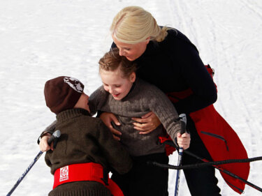 Marius ja Prinseassa Ingrid Alexandra mánáidtogas olggobealde Skaugum (Govva: Fredrik Varfjell / NTB Scanpix)