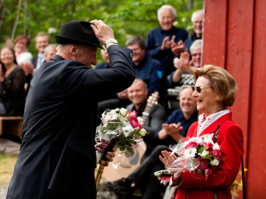 OsenGonagas Harald giitá Elise Skage Hepsø liđiid ovddas (Govva: Ned Alley / NTB scanpix) -