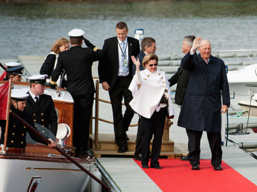 GonagasskiippaGonagas Harald ja Dronnet Sonja geavaheaba Gonagasskiippa dán mátkkis. (Foto: Ned Alley / NTB scanpix) -