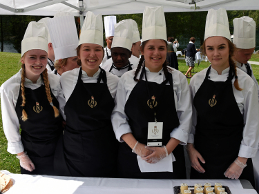 BergenElever fra fagskolene bistår under hagefestene. Foto: Sven Gj. Gjeruldsen, Det kongelige hoff -