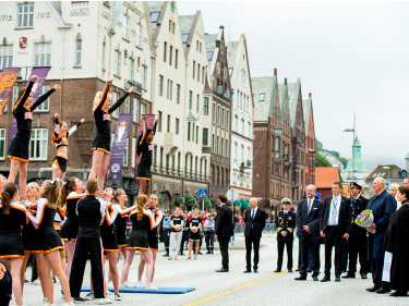 BergenCheerleadere demonstrerte sine ferdigheter på Bryggen Foto: Vegard Wivestad Grøtt / NTB scanpix -