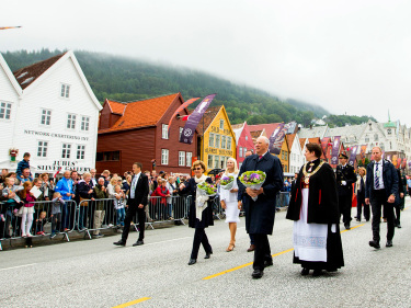 BergenBåde Kongeparet og Kronprinsparet deltok. Foto: Vegard Wivestad Grøtt / NTB scanpix -