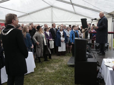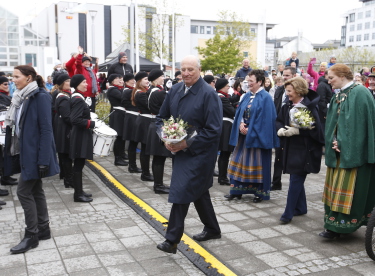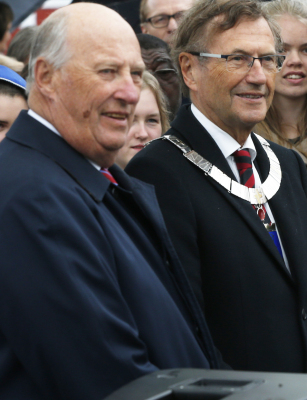 TromsøKong Harald med Tromsøs ordfører, Jarle Aarbakke. Etter hagefesten inviterte Tromsø kommune til folkefest på Stortorget. Foto: Lise Åserud, NTB scanpix -