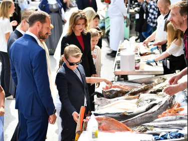TrondheimKongefamilien fikk barnekunst til frokosten i Ravnkloa. Foto: Ole Martin Wold / NTB scanpix -