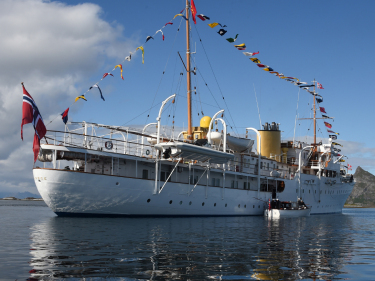 SørfoldGonagasskiipa Norge lea Gonagasbárra orrunbáiki mátkki vuolde – dá áŋkorastán olggobeallái Straumen. Govva: Sven Gj. Gjeruldsen, Gonagaslaš hoavva -