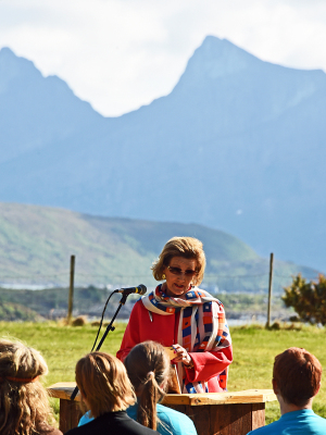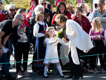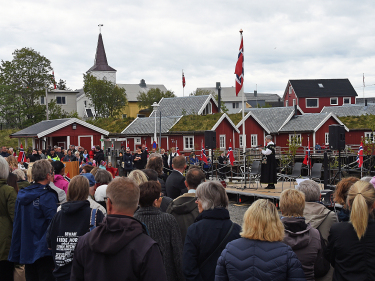MoskenesOllu suohkanássit ledje boahtán vuostáiváldit Gonagasbára ja čuovvut Reine kulturprográmma. Govva: Sven Gj. Gjeruldsen, Gonagaslaš hoavva -