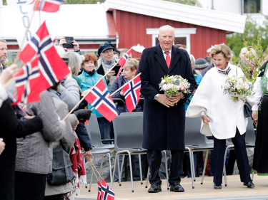SørfoldGonagas ja Dronnet boahtiba mátkki vuosttáš bisánanbáikái: Straumen, Sørfold suohkanis. Govva: Berit Roald, NTB Scanpix. -