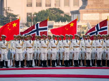 BeijingSihke Kina ja Norgga falástallit gilvaledje. Govva: Heiko Junge, NTB/Scanpix -