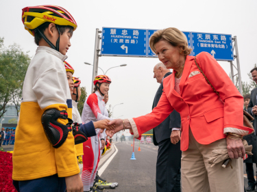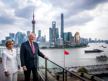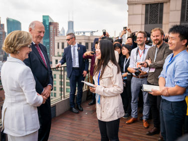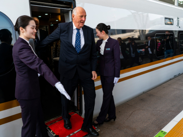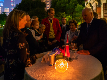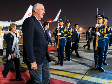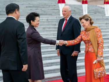 ShanghaiGonagas Harald ja Dronnet Sonja deaivvadeigga maid báikkálaš eiseválddiiguin. Govva: Tim Haukenes -