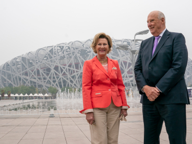 BeijingGonagas Harald ja Dronnet Sonja Kina eanemus dovddus falástallanstadion luhtte, beakkán, "Loddebeassi" Beijingas. Govva: Heiko Junge / NTB Scanpix -