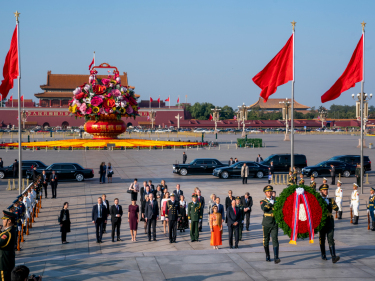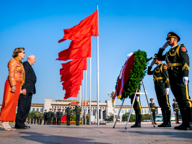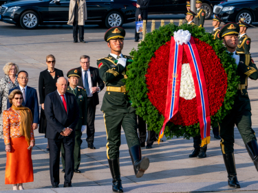 BeijingGonagasbárra bijai kránssa Álbmoga sáŋgáriid Monumeantta lusa. Govva: Heiko Junge, NTB Scanpix -