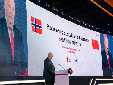 BeijingGolggotmánu 16. beaivvi rabai Gonagas Harald "Norway - China Business Summit 2018" Beijingas. Govva: Heiko Junge / NTB Scanpix -