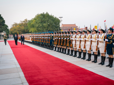 BeijingPresideanta Xi Jinping lei bovden Gonagasa ja Dronnega Kinai, ja golggotmánu 16. beaivvi sávve sudnuide buresboahtima allaáiggálaš seremoniijain olggobealde Álbmoga stuora hálla. Ovdal buresboahtinseremoniija bijai Gonagasbárra lieđđekránssa Álbmoga sáŋgáriid Monumeantta lusa. Govva: Heiko Junge, NTB Scanpix -
