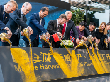 ShanghaiRahpanseremoniija gos ledje earet earáid ealáhusministtar Torbjørn Røe Isaksen ja Marine Harvest stivrajođiheaddji Ole-Eirik Lerøy (gasku). Govva: Heiko Junge / NTB Scanpix -