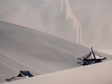 DunhuangGuossástallan loahpahuvvui lunššain pagodanas Yueyaquan lahka,mii lea mánnobeali hápmásaš sáivačáhci sáttováriid gaskkas olggobealde Dunhuang. Govva: Heiko Junge, NTB Scanpix -