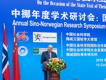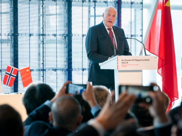 BeijingGonagas Harald rabai vuosttaš – norgga-kiinnálaš symposia servodatfágasuorggis. Govva: Heiko Junge / NTB scanpix -