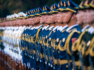 BeijingGonagas Harald inspisere Álbmoga friddjandahkan veaga gudnisoalddáhiid, ovttas Presideanttain Xi Jinping. Govva:Heiko Junge, NTB Scanpix -