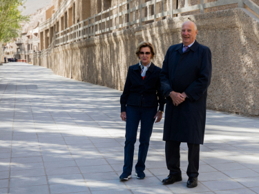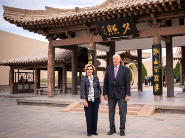 DunhuangGonagas Harald ja Dronnet Sonja joavddaiga Dunhuang girdihámmanii duorastaga golggotmánu 11. beaivvi. Govva: Heiko Junge, NTB Scanpix -