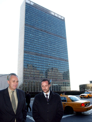 Goodwill- ambassadørProgrammets leder Mark Malloch Brown ønsket kronprinsen velkommen til et fire dagers opplæringskurs i New york etter utnevnelsen i 2003 (Foto: Kristine Nyborg / Scanpix)