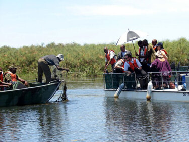 Botswana 2009Ruvdnaprinsa Haakon guolástanmátkkis báikkálaš guolásteddjiiguin Okavango-njálmmáldagas (Govva: Ida Fjeldbraaten, Gonagaslaš hoavva) -