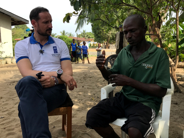 Liberia 2017I april 2017 gikk feltturen med UNDP til Liberia. Kronprinsen møtte overlevende etter Ebola-epidemien som startet i 2014. Det første utbruddet av Ebola ble oppdaget på Redemption Hospital. Foto: Christian Lagaard, Det kongelige hoff. -