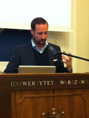 Kapuscinski lecturesDesember 2011 var Kronprinsen hovedtaler under FN utviklingsprograms serie av såkalte “Kapuscinski lectures” på universitetet i Warszawa, Polen. Kronprinsen snakket om status for arbeidet med FNs tusenårsmål for studenter og lærere ved universitetet. (Foto: Christian Lagaard, Det kongelige hoff) -