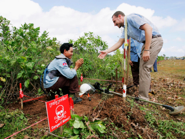 Kambodsja 2004Kronprinsens første feltreise for UNDP gikk til Kambodsja i 2004. Det inkluderte blant annet et besøk til minerydderne ved Cambodia Mine Action Centre (CMAC) i Kampong Chnang. Foto: Erlend Aas / NTB scanpix -