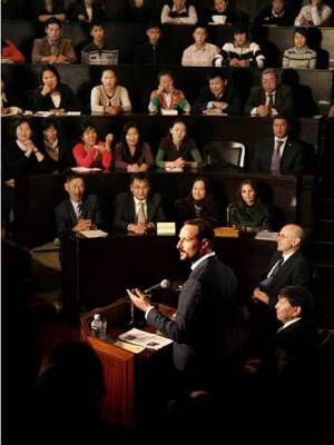 Mongolia 2008Ruvdnaprinsa Haakon logaldallá duhátjagiulbmiliid birra Mongol National Universitehtas (Govva: Agnete Brun) -