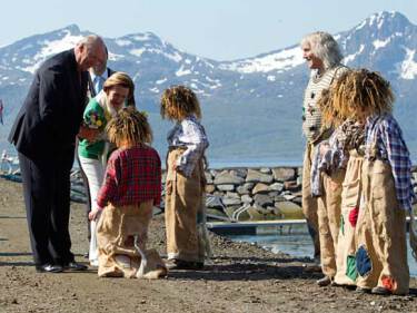 SkalandKongen og Dronningen ankommer Skaland på Senja (Foto: Terje Bendiksby / Scanpix)