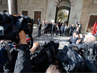 MediaGonagasbárra Norgga ja Tyrkia preassain, buktimin loahpalaš kommentáraid, olggobealde Aya Sofia (Govva: Lise Åserud, NTB scanpix) -