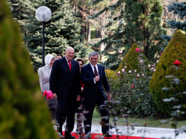 Buresboahtin- seremoniijaPresideanta Abdullah Gül su roavvá Hayrünnisa Gül sávaiga Gonagassii ja Dronnegii buresboahtima,olggobealde Presideantagárdima Ankaras (Govva: Lise Åserud / NTB scanpix) -