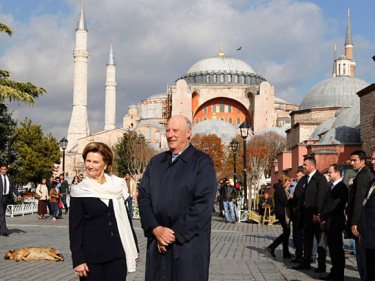 MediaGonagasbárra Norgga ja Tyrkia preassain, buktimin loahpalaš kommentáraid, olggobealde Aya Sofia (Govva: Lise Åserud, NTB scanpix)
