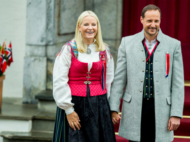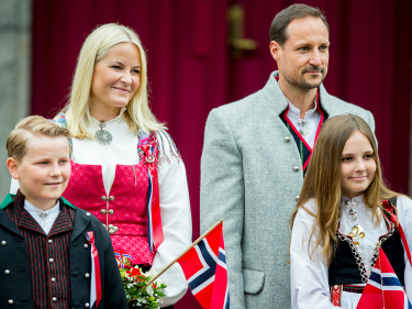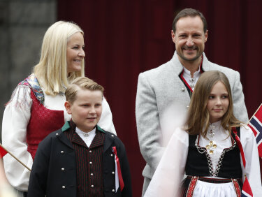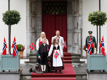 Miessemánu 17. beaivviRuvdnaprinsabearaš dearvvaha mánáidtoga Askeris olggobealde Skaugum. Govva: Vegard Wivestad Grøtt / NTB scanpix -