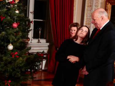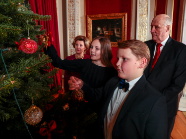 JulenDen 19. desember var det julefotografering på Slottet. Kongeparet, Kronprinsparet, Prinsesse Ingrid Alexandra og Prins Sverre Magnus var samlet om juletreet i Røde salong. Foto: Lise Åserud, NTB scanpix