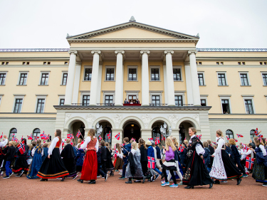 Miessemánu 17. beaivviGonagasbearaš dearvvaha mánáidtoga Šloahttabalkoŋggas. Govva: Vegard Wivestad Grøtt / NTB scanpix -
