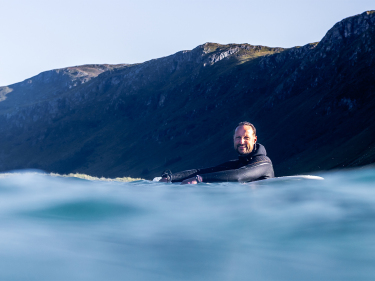 SurfingKronprins Haakon surfer på Sunnmøre ved en tidligere anledning. Foto: Fjordlapse Photography -