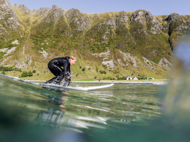 SurfingKronprinsfamilien surfer i Hoddevik ved Stad. Foto: Fjordlapse Photography -