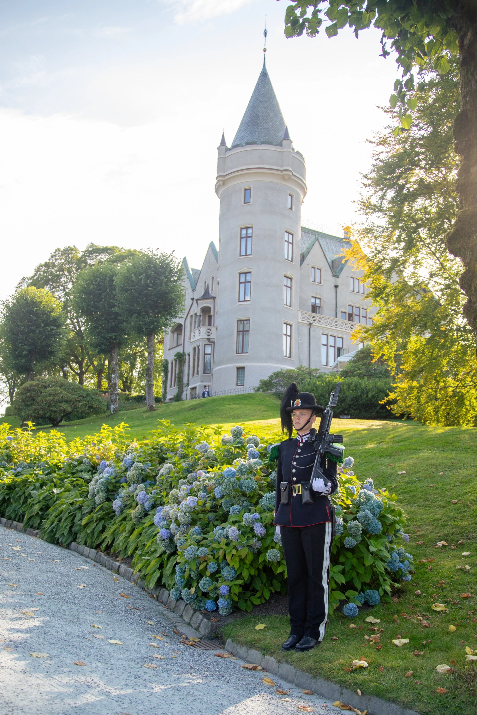 Gonagaslaš šloahta ja Akershus festning váktabálvalusa bargiin leat sin mihtilmas parádeuniforpmat badjelis go leat váktabarggus, main seremoniála bealli deattuhuvvo garrasit.